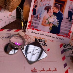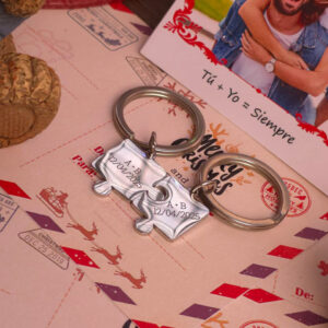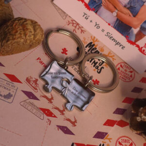 Un regalo simbólico y romántico para celebrar esta Navidad en pareja. Nuestro llavero doble en forma de rompecabezas está fabricado en acero inoxidable de alta calidad, diseñado para que cada pieza encaje perfectamente con la otra, representando la unión y conexión entre ambos. Cada lado de las piezas puede personalizarse con frases, iniciales, fechas o nombres, gracias al grabado láser…