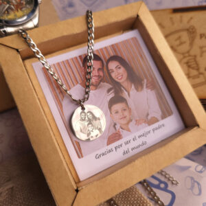Celebra esta Navidad con un regalo que habla desde el corazón. Nuestra cadena para caballero está elaborada en acero inoxidable de alta resistencia, diseñada para acompañarlo todos los días sin perder brillo ni color. Su dije cuadrado ofrece un espacio ideal para grabar fotos, iniciales o frases especiales, convirtiéndolo en un recuerdo único y duradero. Perfecta para papá, tu pareja,…