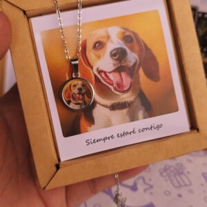 Collar Lumina "Luz que llevas contigo" Este hermoso collar tiene la intención de llevar tus mejores recuerdos de una persona especial junto con un hermoso mensaje grabado en la parte posterior Su material es acero inoxidable y la fotito esta recubierta de acrilico para protegerla Su medida es de 17*17