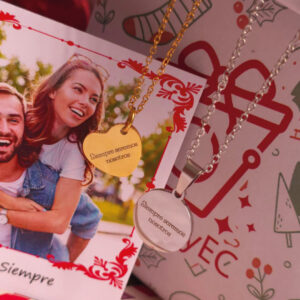 Celebra esta Navidad con un regalo que simboliza conexión, amor y recuerdos compartidos. Este set incluye dos collares especialmente diseñados para pareja:un dije de corazón para dama, delicado y elegante, y un dije redondo para caballero, moderno y resistente. Ambos pueden personalizarse con fotos y frases grabadas, creando un recuerdo único que los acompañará todos los días. El grabado láser…