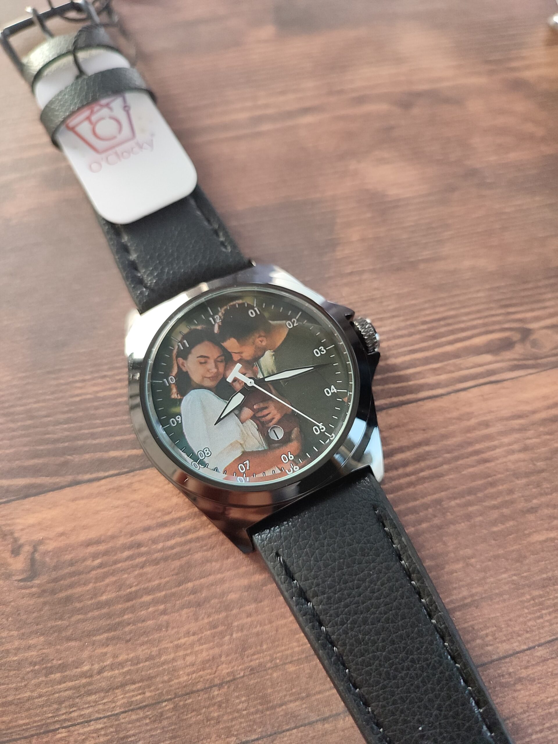 Este elegante reloj personalizado es mucho más que un accesorio: es una forma única de llevar a esa persona especial siempre contigo. Su diseño clásico con correa de cuero y caja metálica lo convierte en el regalo perfecto para sorprender con un detalle lleno de amor y significado. La fotografía se imprime directamente en la esfera, logrando un acabado nítido y duradero que transforma el reloj en una pieza totalmente exclusiva.