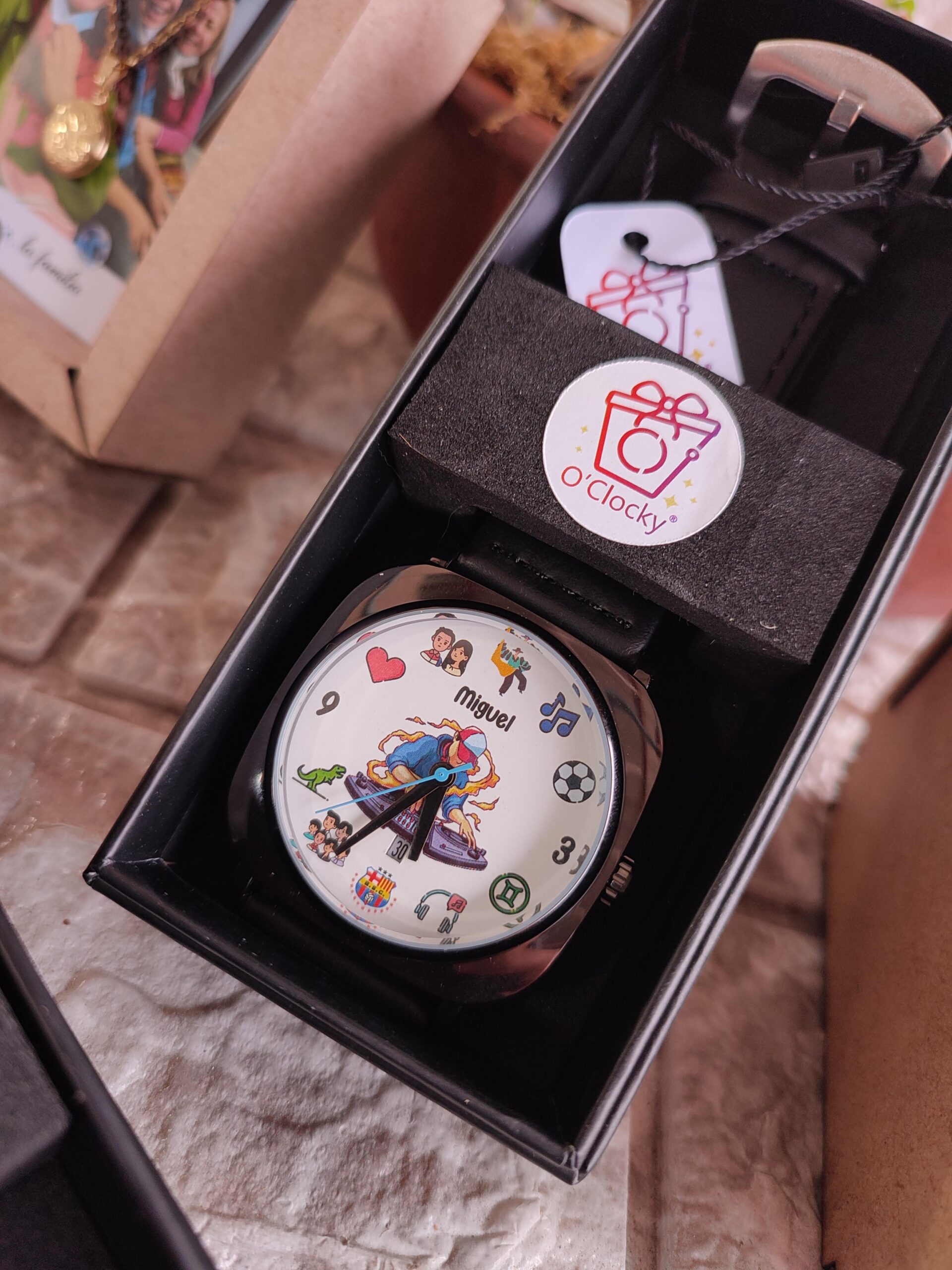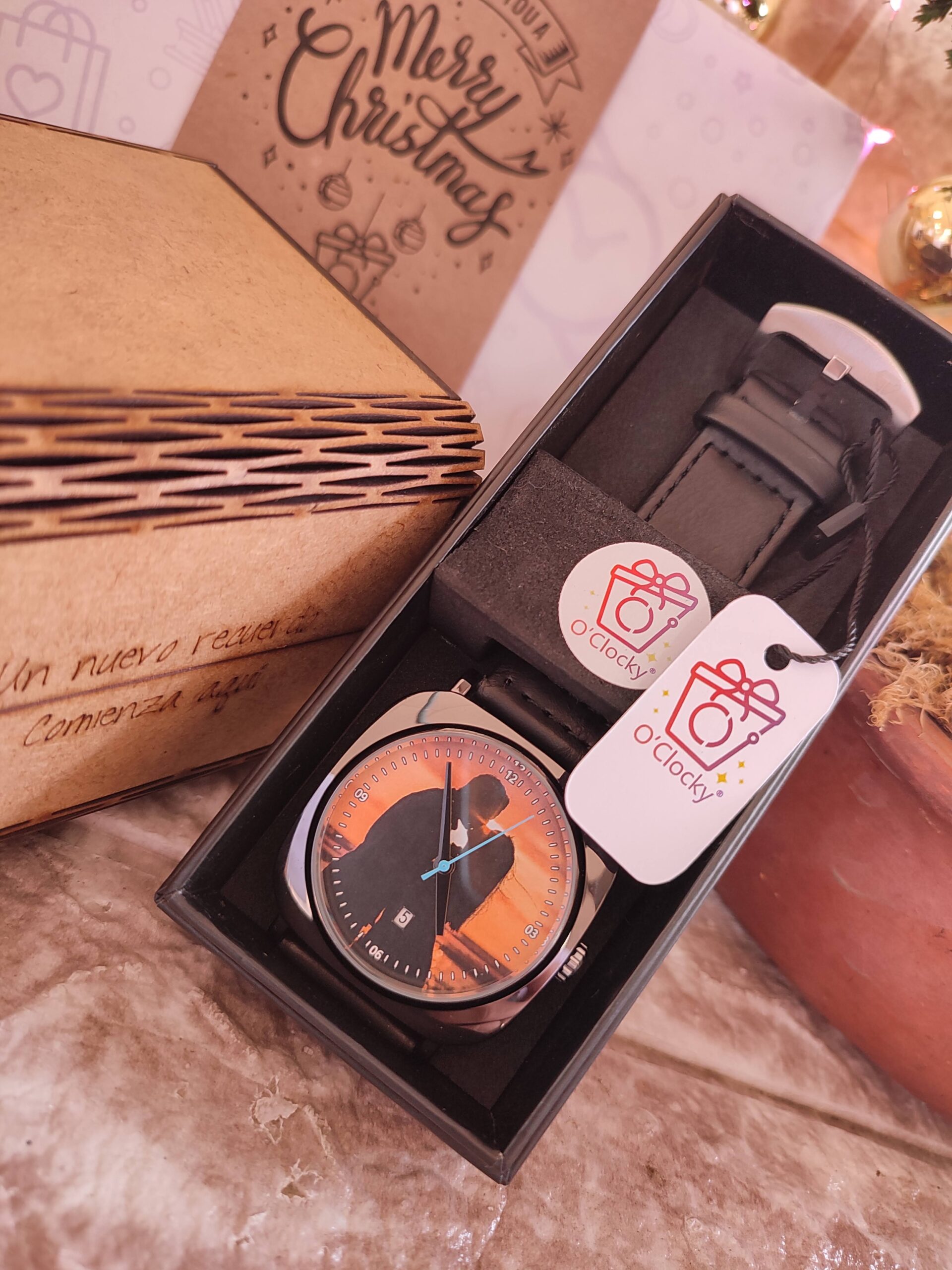 Este elegante reloj personalizado es mucho más que un accesorio: es una forma única de llevar a esa persona especial siempre contigo. Su diseño clásico con correa de cuero y caja metálica lo convierte en el regalo perfecto para sorprender con un detalle lleno de amor y significado. La fotografía se imprime directamente en la esfera, logrando un acabado nítido y duradero que transforma el reloj en una pieza totalmente exclusiva.